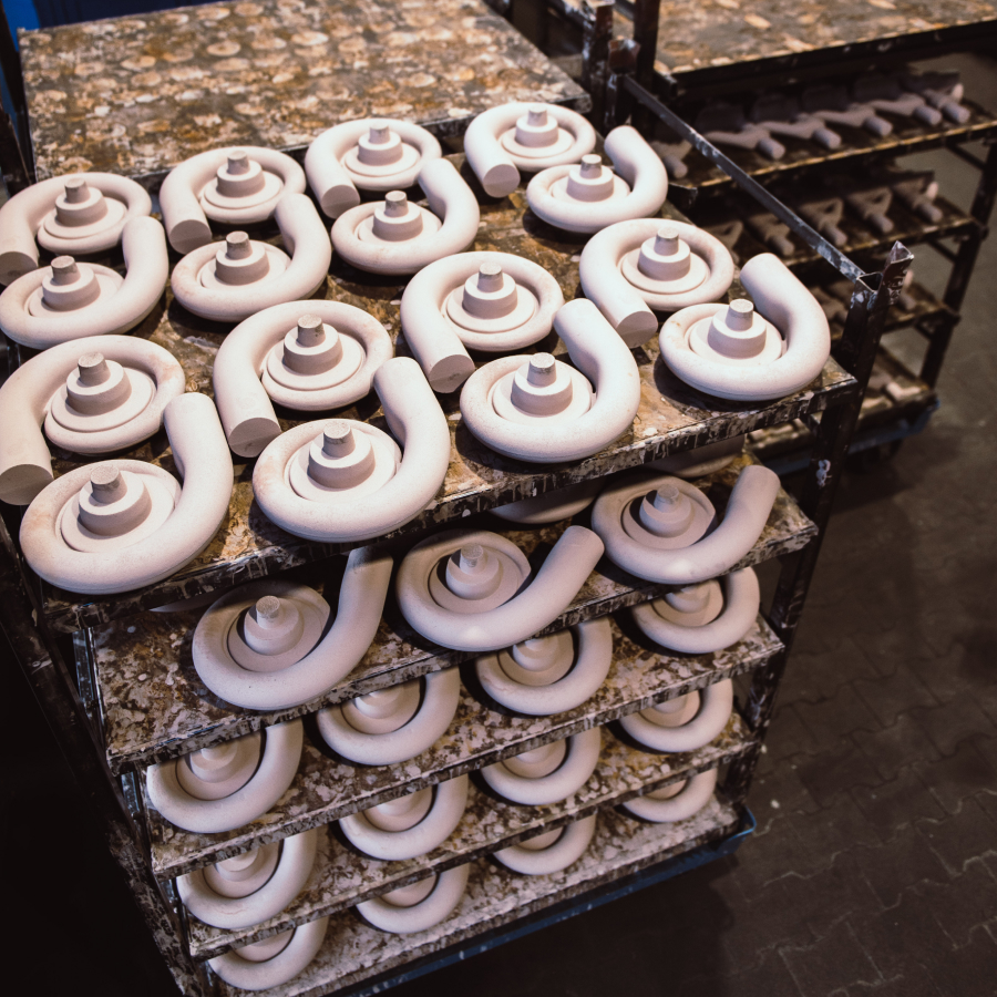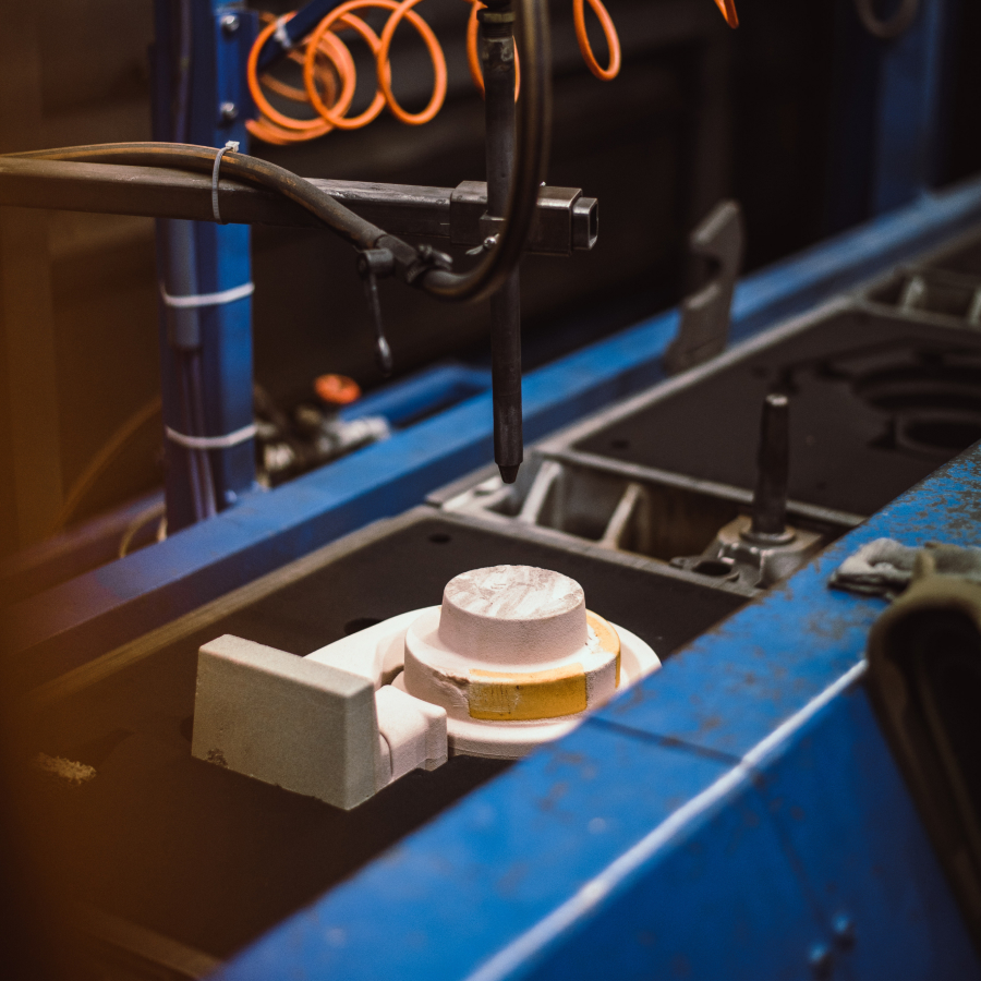 Die Kerne werden mit in den Formkasten eingelegt und sorgen so für den gewünschten Hohlraum im späteren Gussteil. Der Umgang mit Kernen in der Modellauslegung und in der Konstruktion setzt ein hohes Erfahrungswissen voraus. Kerne sind für die Qualität und die Funktionalität eines Gussteils immer von entscheidender Bedeutung. Diesen Erfahrungsschatz in der Kernherstellung erweitern wir täglich seit 1945.